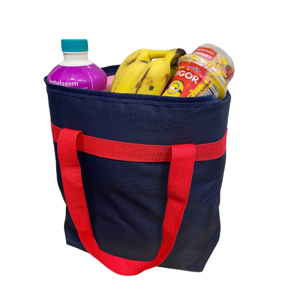 Sacola Térmica, confeccionada em nylon, revestimento em laminado PVC, fechamento em ziper, e alça com fita de 25mm. Várias cores