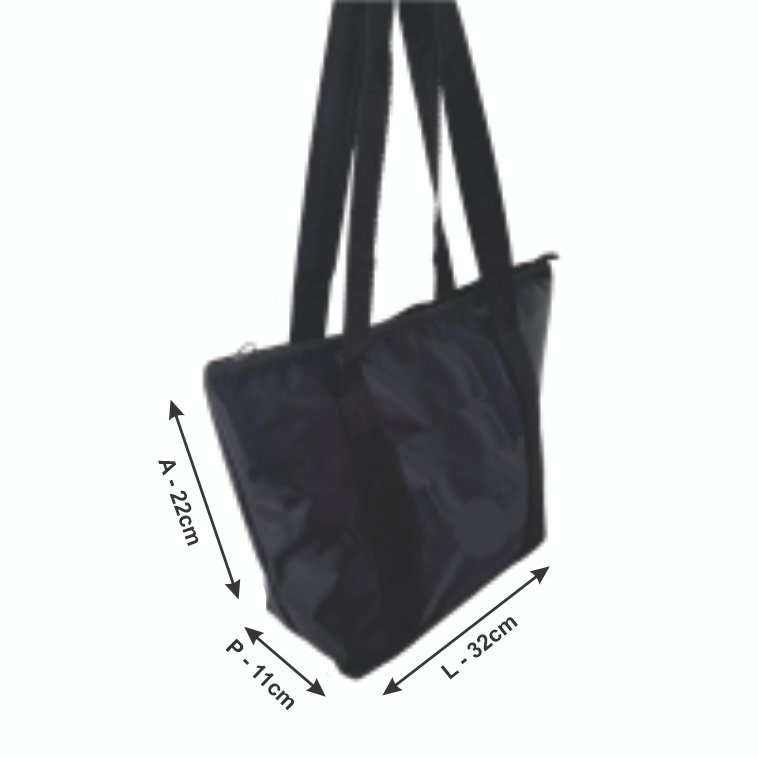Sacola Térmica, confeccionada em nylon, revestimento em laminado PVC, fechamento em ziper, e alça com fita de 25mm. Várias cores.